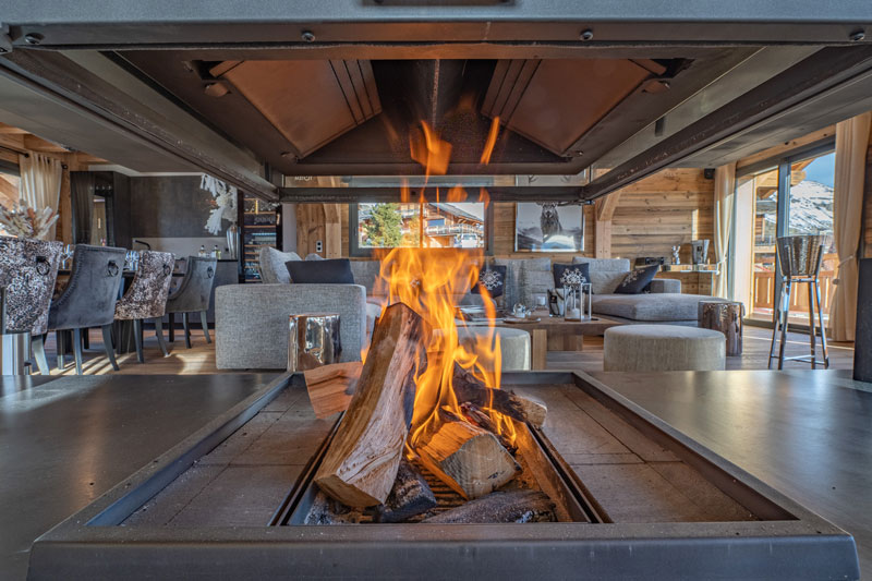 Ici, les journées se terminent autour d’un bon plat, d’un grand cru et d’un feu crépitant, face au spectacle grandiose de la montagne. Le luxe à l’état pur, en altitude.